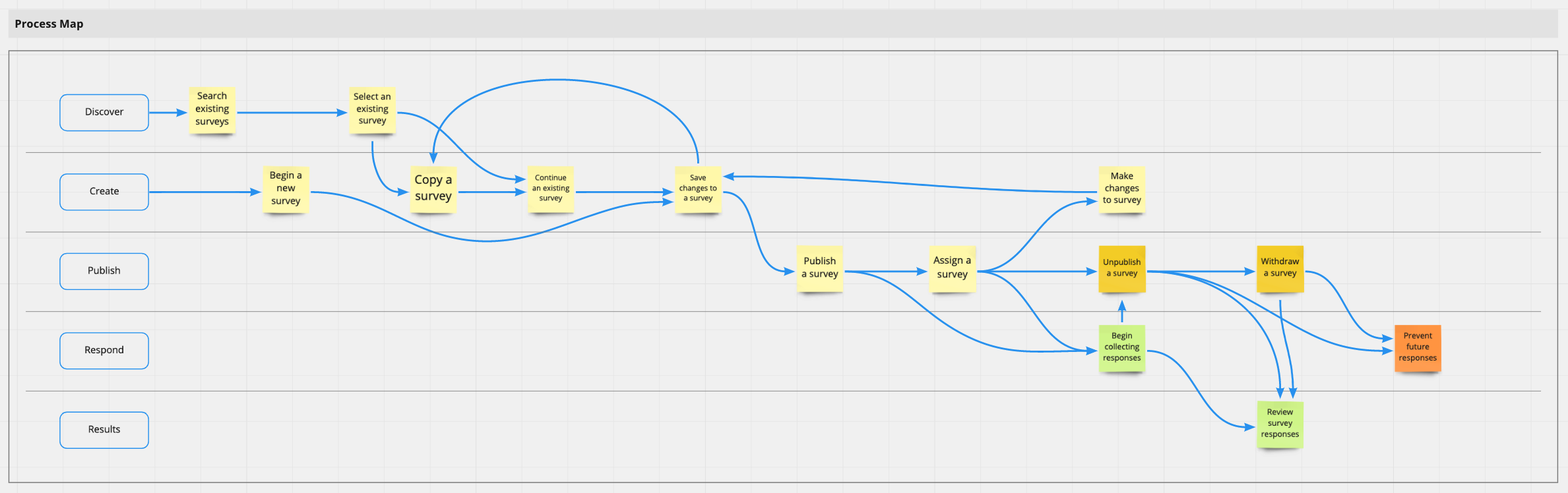 As the next iteration of surveys began to take shape, the team worked to isolate and annotate each process. Many sub-processes also had to be accounted for, including