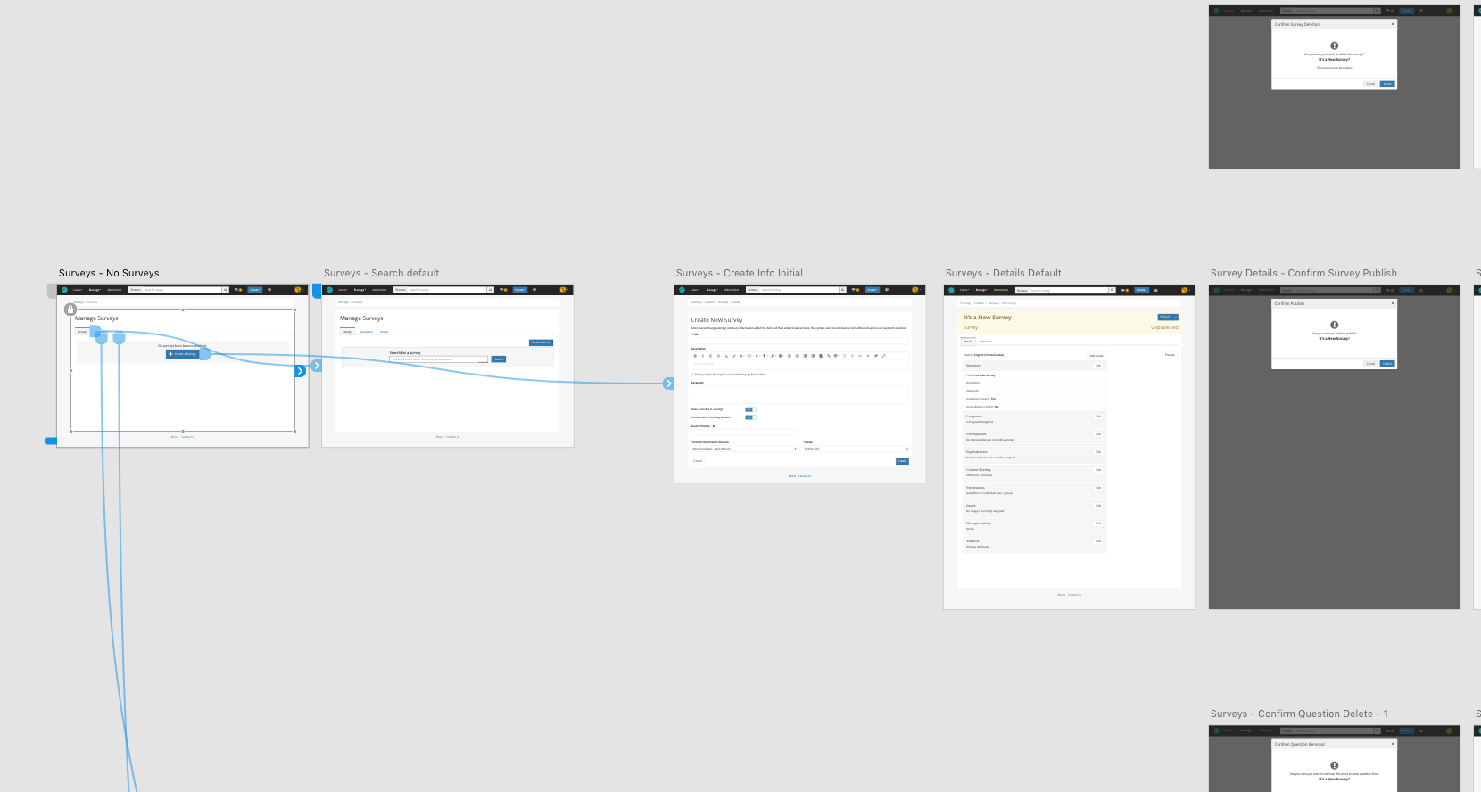 - Surveys were now fully self-contained content objects, free to be associated with any eligible content container — such as courses or curriculums, or could simply stand alone and be linked to from anywhere.